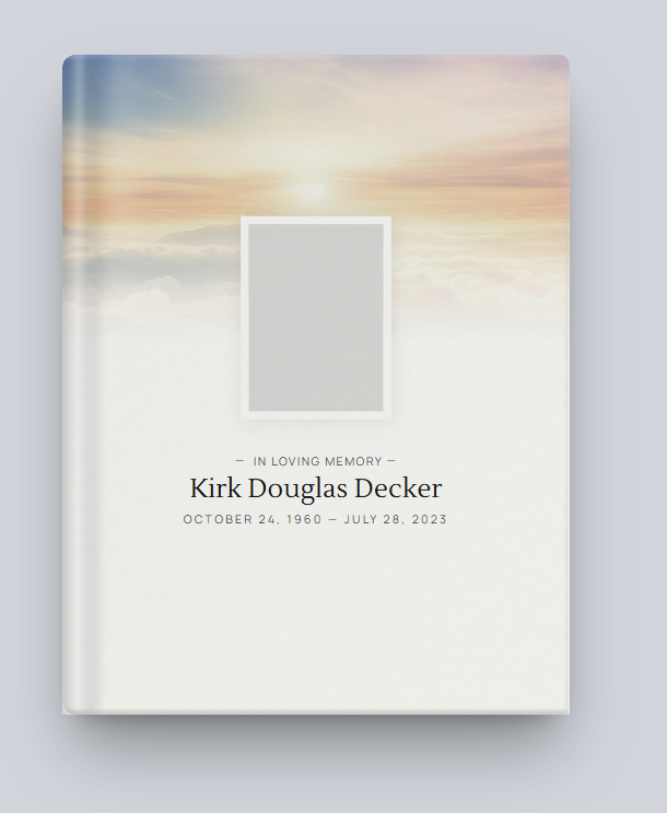Kirk is survived by his father, Jack H. Decker (partner Lorraine Ueltzen) of Monroe, his two brothers Keith Decker (partner Angie Boisvert), Tom Decker (wife Diaelma), sister Amy Pfleger (Dennis). His four nieces (Bethany, Anna, Kathryn, and Marianna), two nephews (Marcus and Michael). great nephews (Grayson, Rhett and Lincoln) and great niece (Lennon).